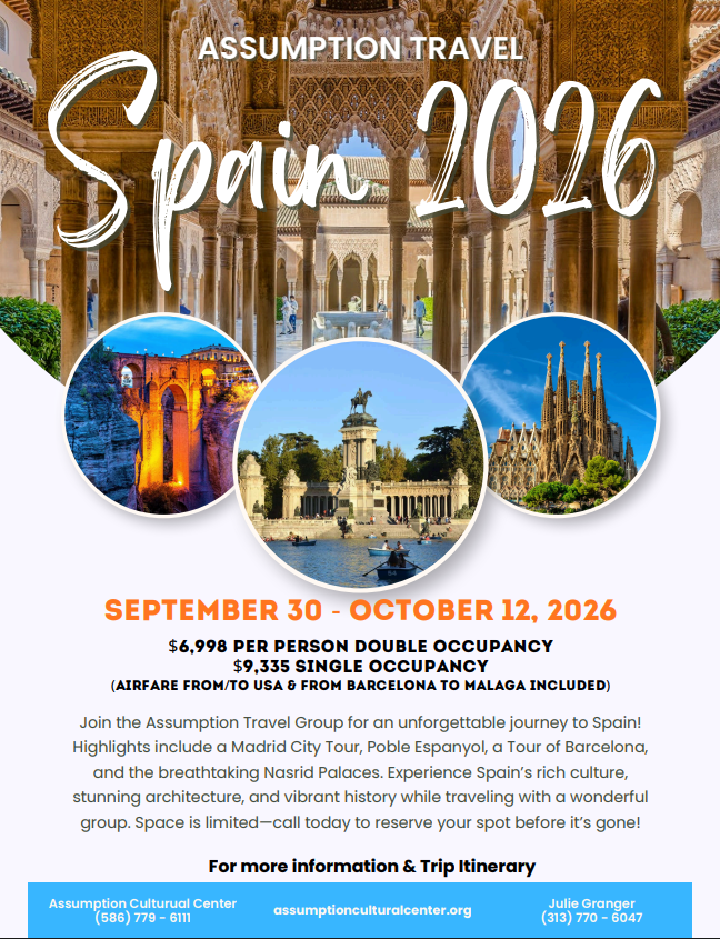 FOR ALL PAYMENTS, CALL ASSUMPTION CULTURAL CENTER (586) 779-6111